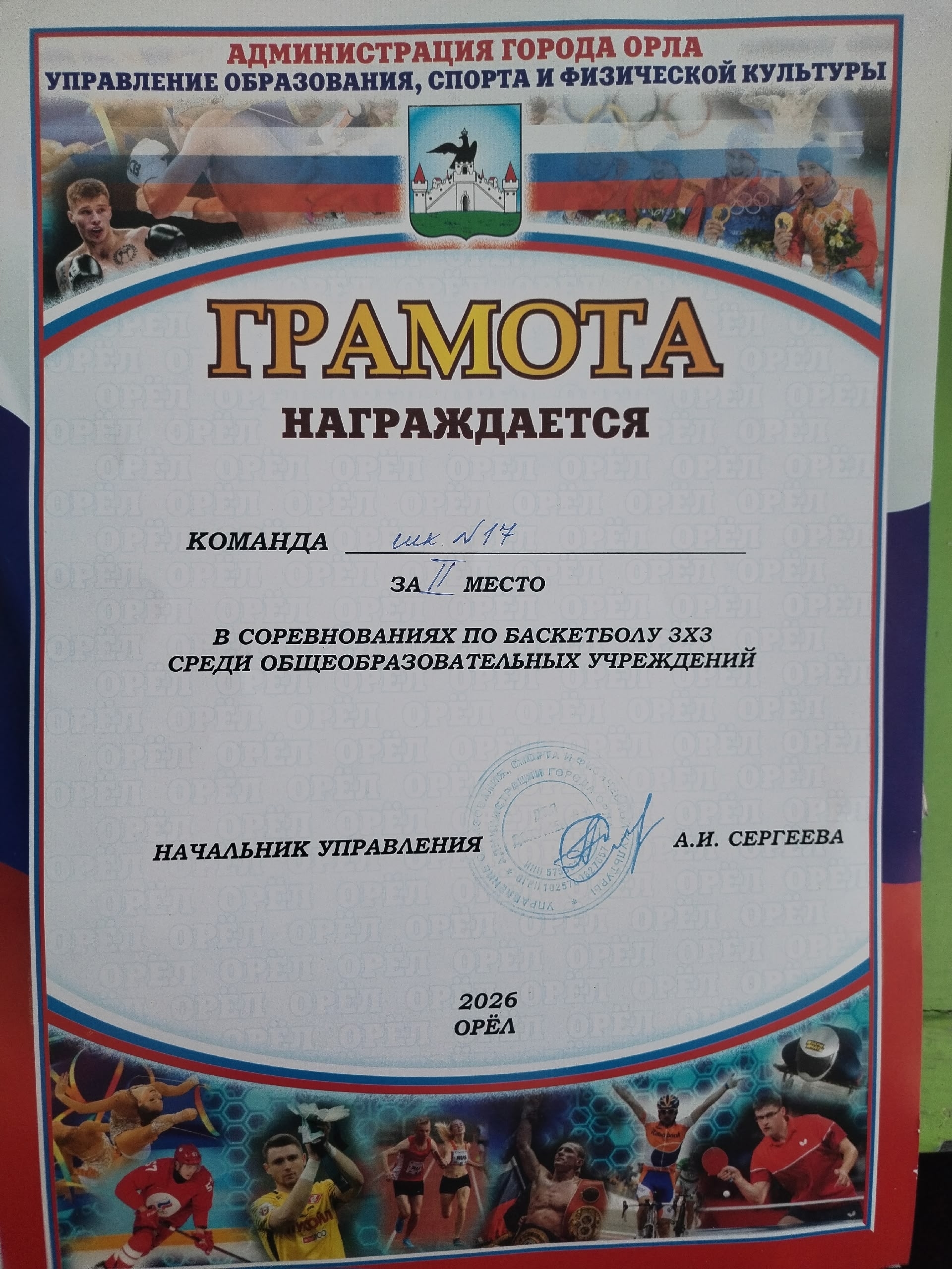 План спортивно-массовых мероприятий на 2022-2023 учебный год в МБОУ СОШ №17 г.Орла