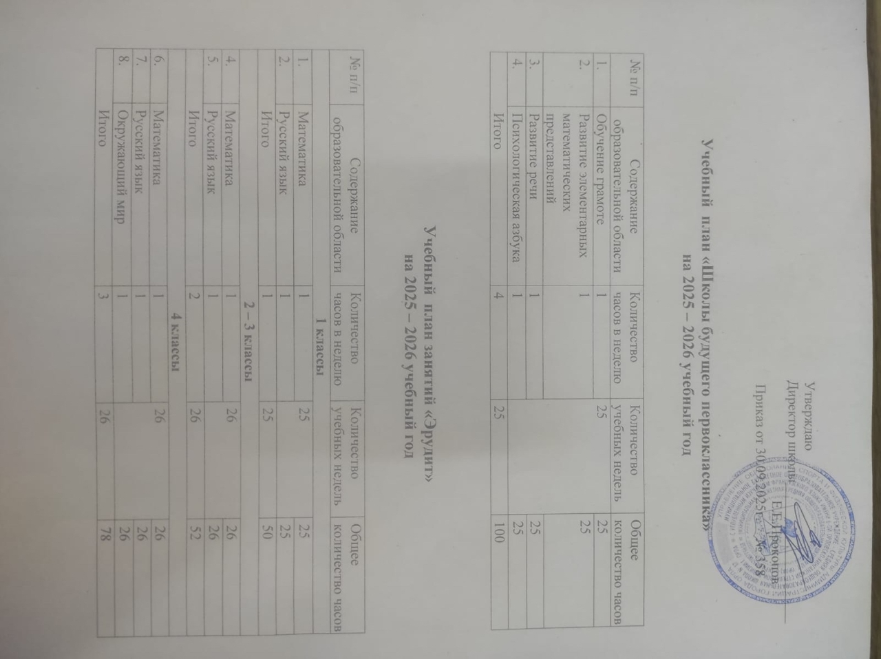 Учебный план "Школы будущего первоклассника"и "Эрудита" на 2025-2026 учебный год